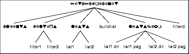 The buildlist utility resolves all hostnames in the lists directory into IP addresses using the Domain Name System (DNS). The utility places this information in database files in the lists.dbm directory. The actual names of the files created in the /etc/choicenet/lists.dbm directory can vary depending on your operating system.