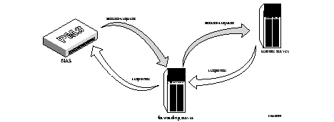 1. The NAS sends an accounting-request to the forwarding server.